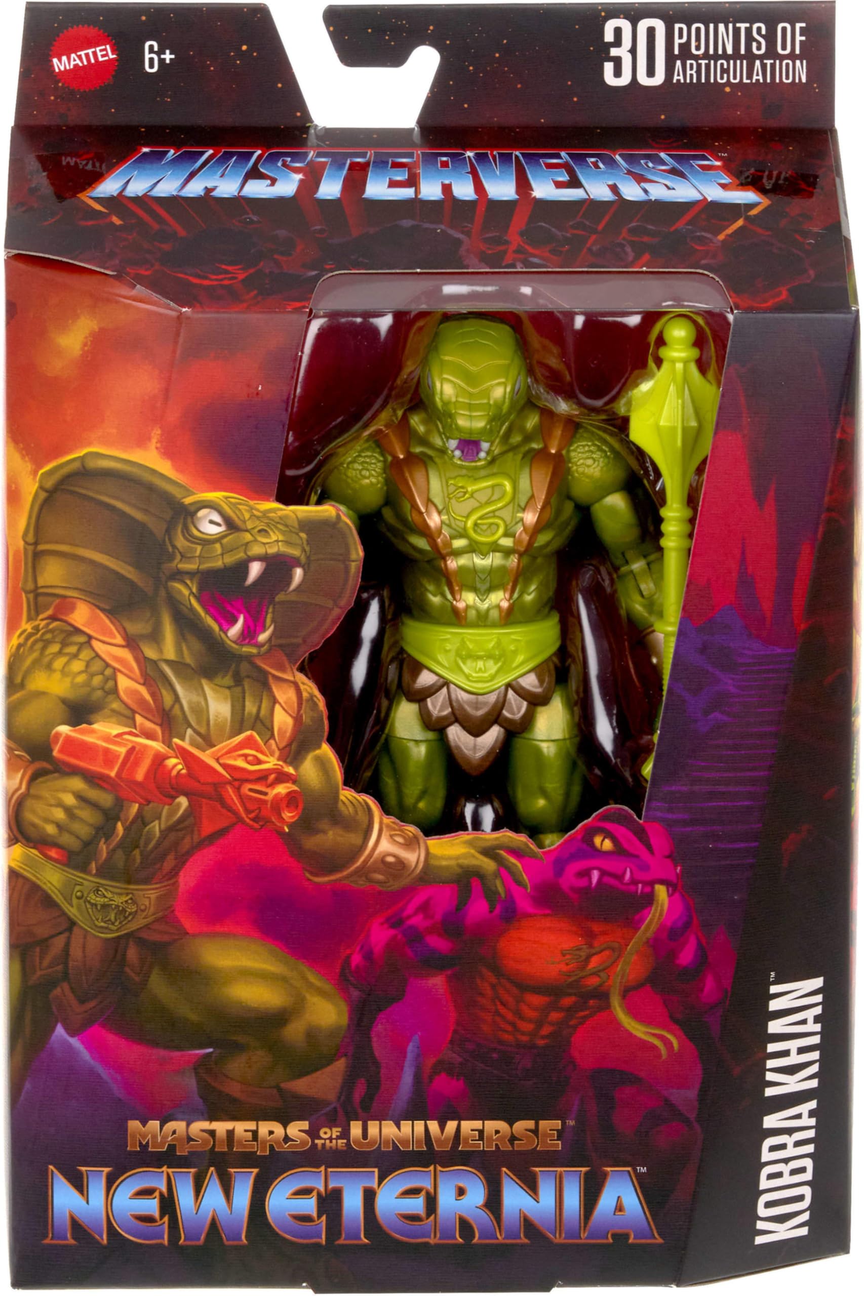 - MOTU Masterverse action figure of Kobra Khan / Camo Khan is designed at 7-inch scale with 30 points of articulation and a high level of detail in the New Eternia edition of the figure.