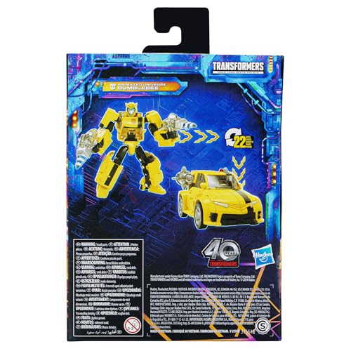 Details: Unite your favorite characters from across the world of Transformers robots into your collection with the Transformers Legacy United Deluxe Class Animated Universe Bumblebee action figure! This 5.5-inch Animated Universe Bumblebee action figure converts between robot and mini car modes in 22 steps. Gear up for battle with the included Stinger and turbo booster accessories. The Animated Universe Bumblebee figure is inspired by the character from the Transformers: Animated animated series and features articulated head, arms, and legs for awesome action poses. Celebrate the last 40 years of Transformers history with Transformers Legacy action figures. Transformers Legacy opens the portal to a whole new universe of -- More Than Meets the Eye -- bringing together every Transformers generation like you’ve never seen before. Collect and combine different characters to create your ideal Legacy lineup.