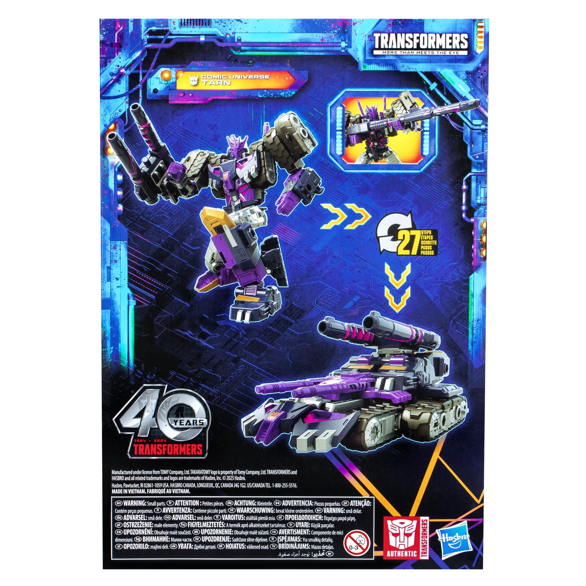 Details: Unite your favorite characters from across the world of Transformers robots into your collection with the Transformers Legacy United Voyager Class Comic Universe Tarn action figure! This 7-inch Comic Universe Tarn action figure converts between robot and tank modes in 27 steps. Gear up for battle with the included blaster accessory that attaches to the figure in both modes. The Comic Universe Tarn figure is inspired by the character from the Transformers IDW comic book universe and features articulated head, arms, and legs for awesome action poses. Celebrate the last 40 years of Transformers history with Transformers Legacy action figures. Transformers Legacy opens the portal to a whole new universe of -- More Than Meets the Eye -- bringing together every Transformers generation like you’ve never seen before. Collect and combine different characters to create your ideal Legacy lineup.